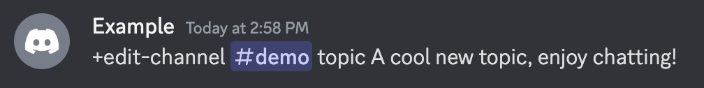 +edit-channel <channel> <property (name/topic/position/category/nsfw)> <new name/topic/position/categoryID/nsfw (yes/no)>Arguments